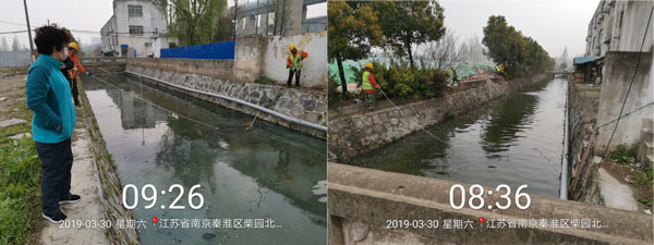 秦淮區(qū)果園河水體黑臭應急治理工程,于2019年3月29日啟動。果園河應急治理周期為30日歷天治理期內(nèi),采用RhP體系技術(shù),運用多種實施措施,僅3天水體臭味消除、水色轉(zhuǎn)為綠色、透明度提升到清澈見底。至4月10日,果園河水生態(tài)系統(tǒng)正在良性發(fā)展,水生態(tài)多樣性開始呈現(xiàn)、水質(zhì)指標氨氮下降至5.0mg/L以下、溶解氧提升至4.0mg/L以上。