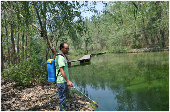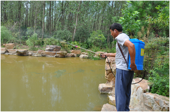 1.全水域潑灑:每7天進(jìn)行一次,每次用量1號水域6ppm,2號水域10ppm,3號水域7ppm,使用噴霧器人工沿岸邊均勻潑灑。