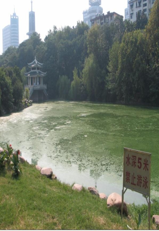 銀河公園水域面積約為50000平方米,平均水深約為2米。 銀河公園水質(zhì)監(jiān)測指標為地表水劣V類,耐污力很強的藍藻肆意生長,連續(xù)多年藍藻爆發(fā)成害,水體伴有異臭味,呈現(xiàn)嚴重富營養(yǎng)化狀況。