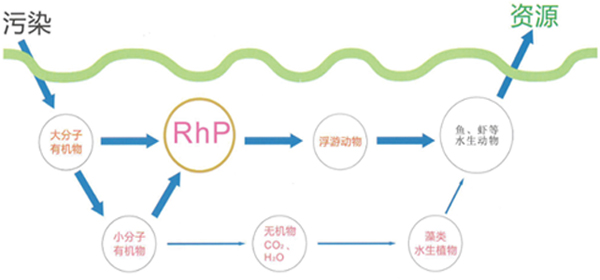 上圖中食物網(wǎng)關(guān)系可知,水體中的污染物首先RhP菌分解、吸收。隨后RhP被浮游動(dòng)物攝食,最終轉(zhuǎn)移到魚蝦等水生動(dòng)物體內(nèi)。也就是說,水體中曾經(jīng)的污染物質(zhì)——氮、磷、鉀等最終成了工程魚身體中的營(yíng)養(yǎng)物質(zhì)。這就是RhP技術(shù)的神奇之處。